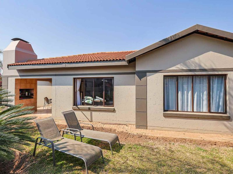 Resort-style estate living in prestigious Silver Lakes Golf Estate, close to manicured fairways and secure amenities. Covered patio with built-in braai, low-maintenance garden, fully furnished 2-bed, 2-bath, double garage.