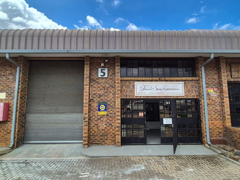 Efficient, secure operations in Silvertondale industrial node, Pretoria East — move-in ready unit with mezzanine office, epoxy floor and two bathrooms.