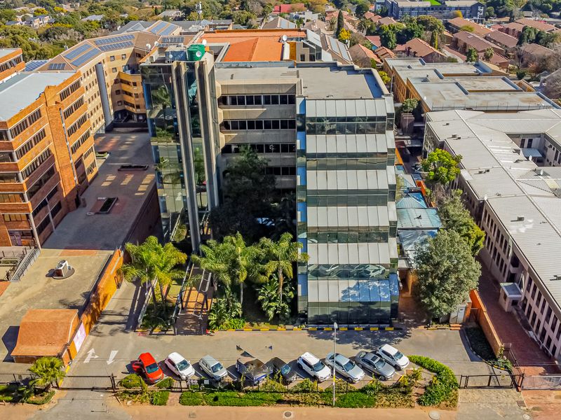 Seamless corporate workspace in Randburg's main business node with Gautrain bus access and nearby courts; air-conditioned floors with passenger lifts and server rooms on every level.