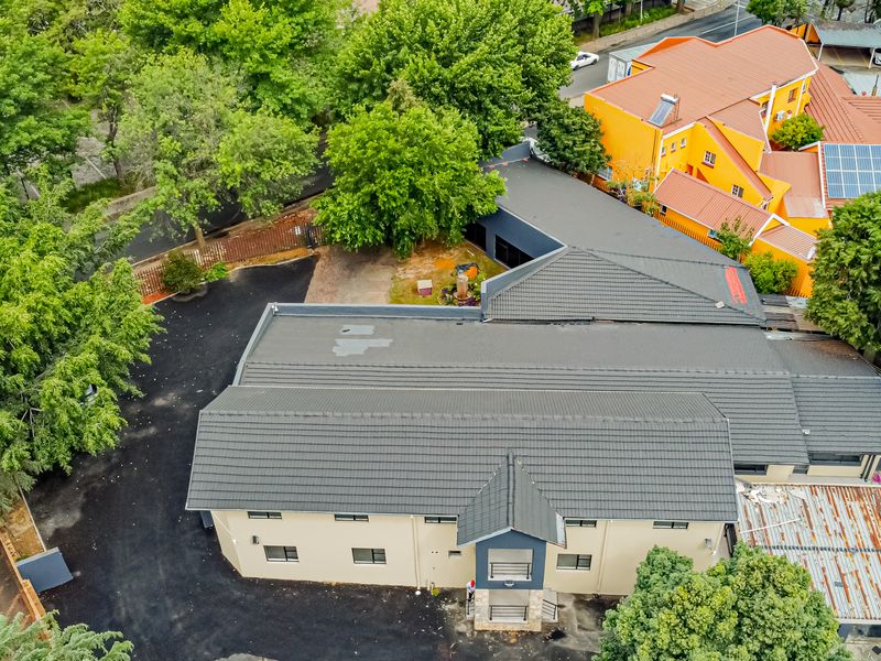 Smart professional workspace near Randburg courts and Gautrain bus stop, offering a private balcony and garden, fibre connectivity, open-plan offices and two modern bathrooms, 162 m².