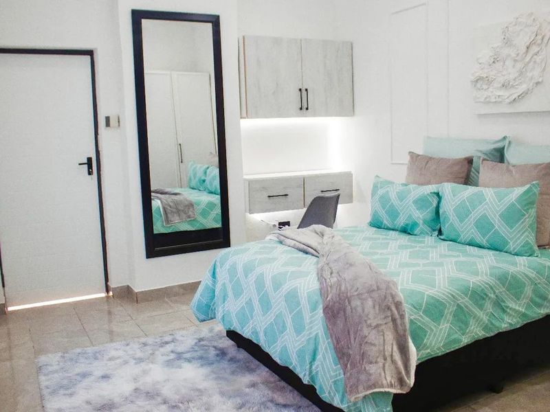 Short-term furnished room in a friendly Ferndale guesthouse, just 1 km from Brynston/Sandton. Shared spacious lounge, dining, kitchen and garden with pool for relaxed stays.