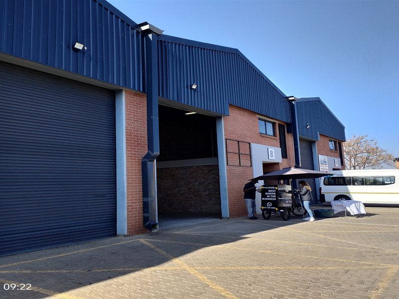 Warehouse in Kimbuilt Business Park, 441 m², 2 bathrooms, 100 amps power, ample parking and yard space.
