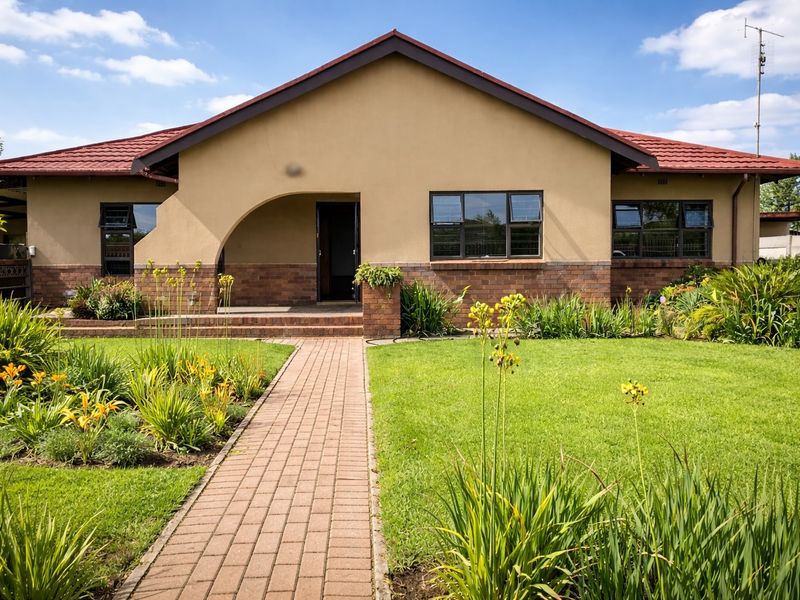 Relaxed family living in tranquil Witpoortjie near malls and schools, featuring a large backyard with enclosed sparkling pool and drive-through Hollywood garage — four bedrooms, three bathrooms.