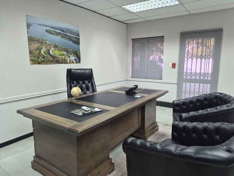 Easily accessible workspace in Bryanston Gate, steps from Coachman's Crossing and St Stithians, with professional fit-out, private patio office and 12–14 seat boardroom.