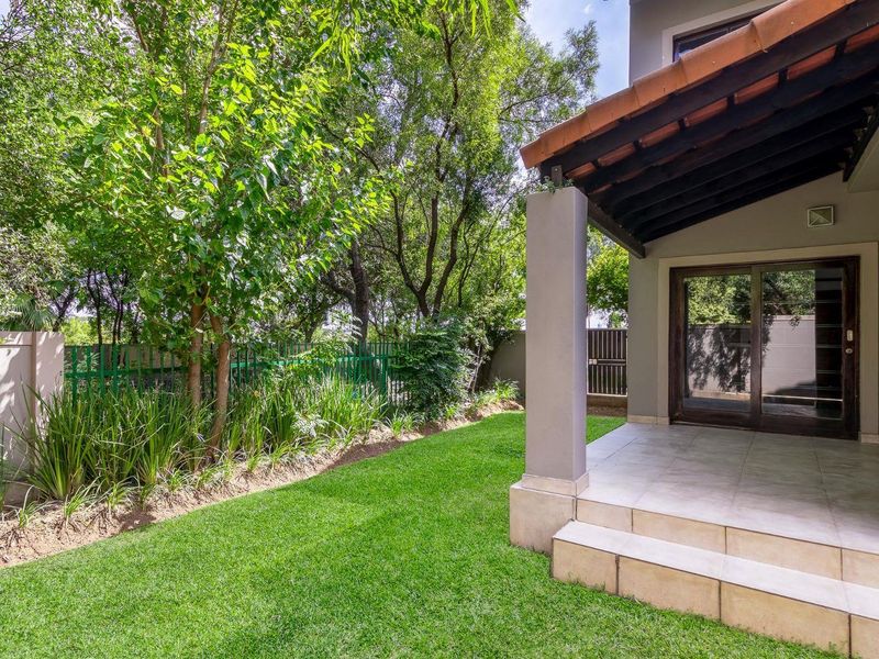 Relaxed family living beside a peaceful greenbelt in The Fields South Estate, Dainfern, with a pet-friendly wrap-around garden, three bedrooms, 2.5 baths and double garage.