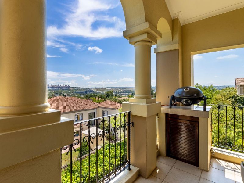 Live elevated Dainfern life steps from Dainfern Square's shops and eateries — north-facing apartment with private balcony and loft overlooking Dainfern Valley; two bedrooms, two bathrooms, two parking (one covered).