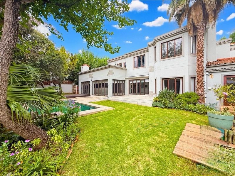Entertainer's haven for effortless family living in Dainfern Valley Estate, with covered patio and pool, private outdoor hot tub and shower — includes self-contained cottage, three garages.