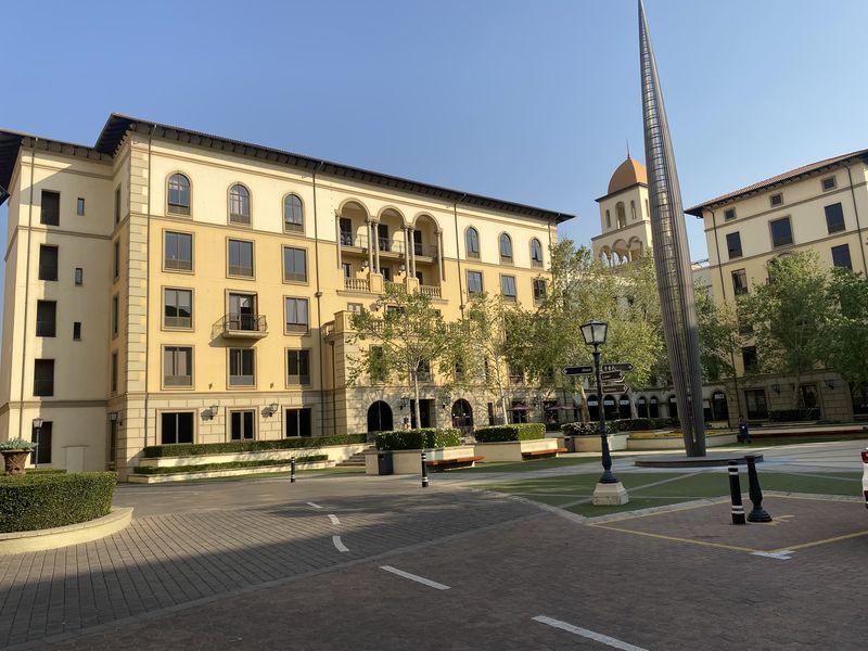 Prime Monte Casino office living with vibrant precinct amenities and easy N1/Gautrain access; first-floor suite boasts manicured-ground views, large boardroom, balconies, and two bathrooms.