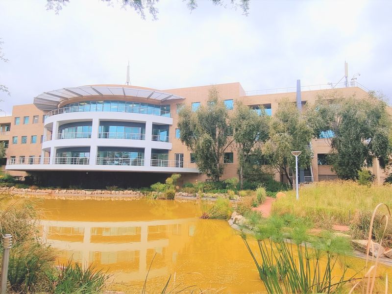 Work in a serene, high-performance business setting at Sagewood House on Kelvin Drive, Woodmead — enjoying landscaped gardens and water features, private balconies, and sustainable solar-powered efficiency.