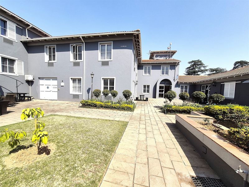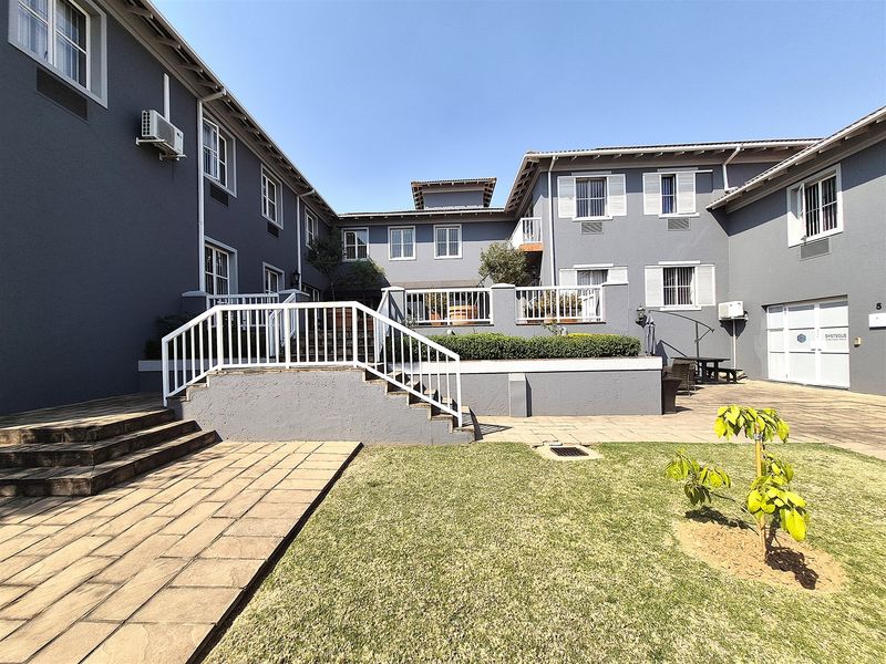 Exclusive first-floor suite in Fountain Grove, Hyde Park — on a two-suites level with large open-plan area, private office and fitted kitchen; secure complex with coffee shop and backup power. 218 m².