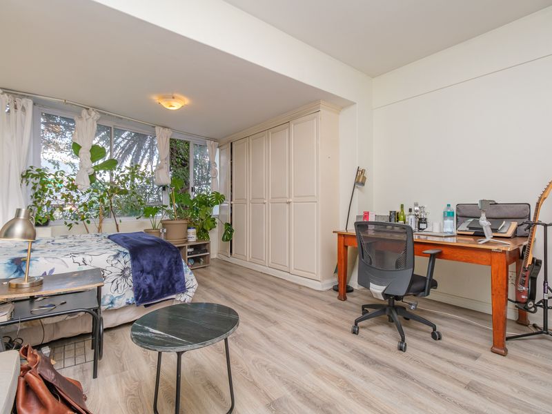 Effortless urban living in Illovo, steps from Thrupps Shopping Centre and Gautrain — fully furnished studio with a sleek granite kitchen, full bathroom and secure basement parking.