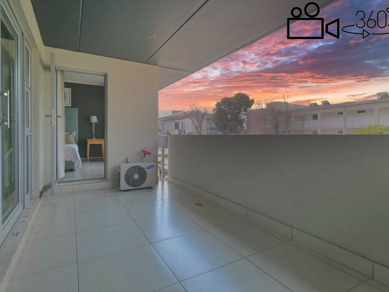 Live an executive urban lifestyle in Sandown, Sandton — walking distance to Gautrain and Sandton CBD. Large balcony overlooking Mushroom Park; two bedrooms, two baths, double garage.
