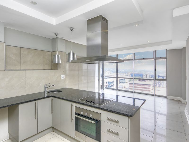 Live elevated in central Sandton with panoramic north-facing skyline views from a covered balcony; enjoy pool and concierge, steps to Sandton City and Gautrain. Two bedrooms, two baths, two parking.