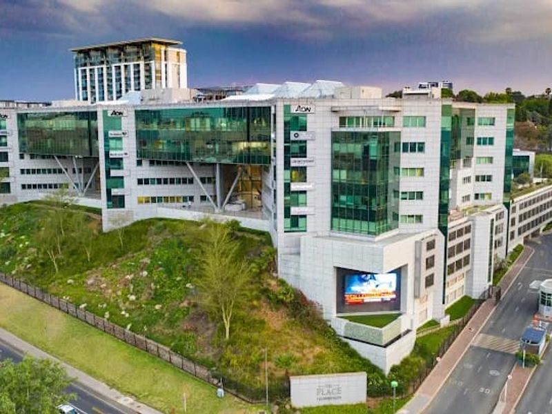 Productive, sustainable workspace in Sandton's business heart, minutes from the M1 and Grayston Shopping Centre, offering landscaped gardens and backup power for uninterrupted operations.