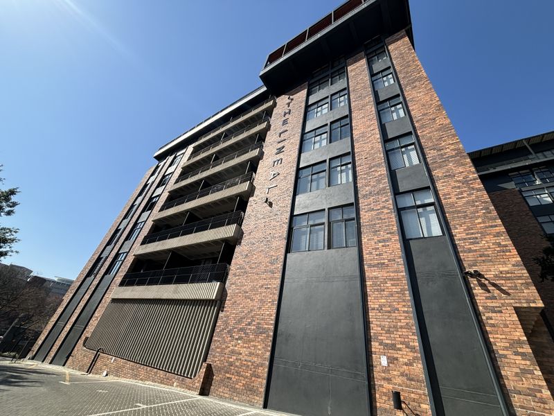 Urban living in Sandown, Sandton — bright fourth-floor apartment with panoramic skyline views from a rooftop pool and entertainment area. Fully fitted kitchen; one bedroom, one bathroom; paid parking available.