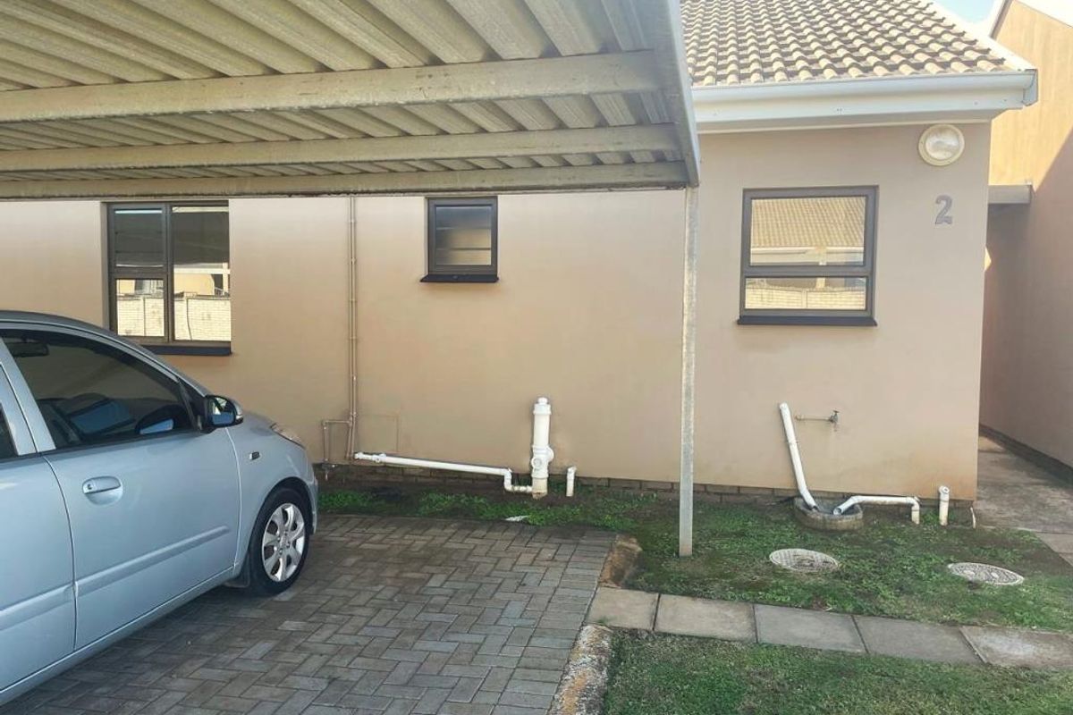 Comfortable family living in a well-maintained complex close to shops and amenities, with an undercover braai, small garden and secure remote-control parking; two bedrooms, one bathroom.