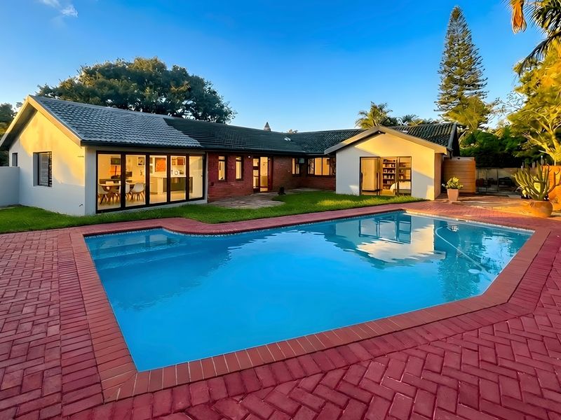 Effortless entertaining and relaxed family living in a secure neighbourhood, with a pool-centered garden, massive open-plan kitchen, built-in braai and double garage; four bedrooms, three-and-a-half baths.