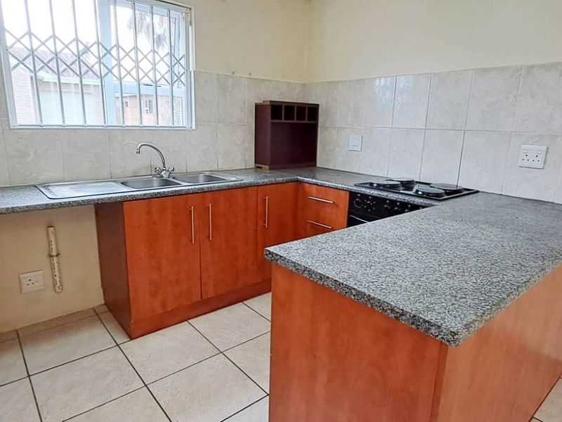 Family-friendly living with easy access to schools, Bay West Mall and restaurants; enclosed garden and pet-friendly layout, kitchen with stove, three bedrooms, two bathrooms and single garage.