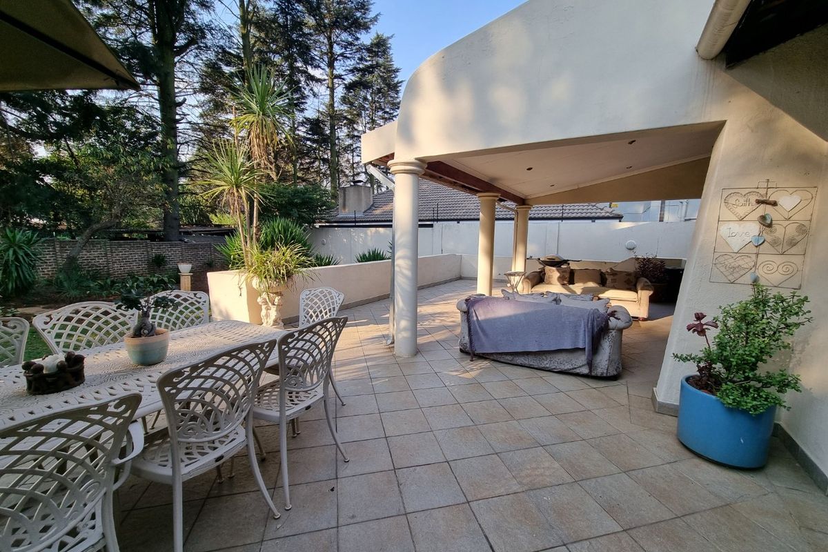Secure boomed neighborhood offers family-friendly peace, with a large undercover patio overlooking a lush garden—big kitchen and scullery, domestic accommodation, 4 beds, 2.5 baths, double garage.