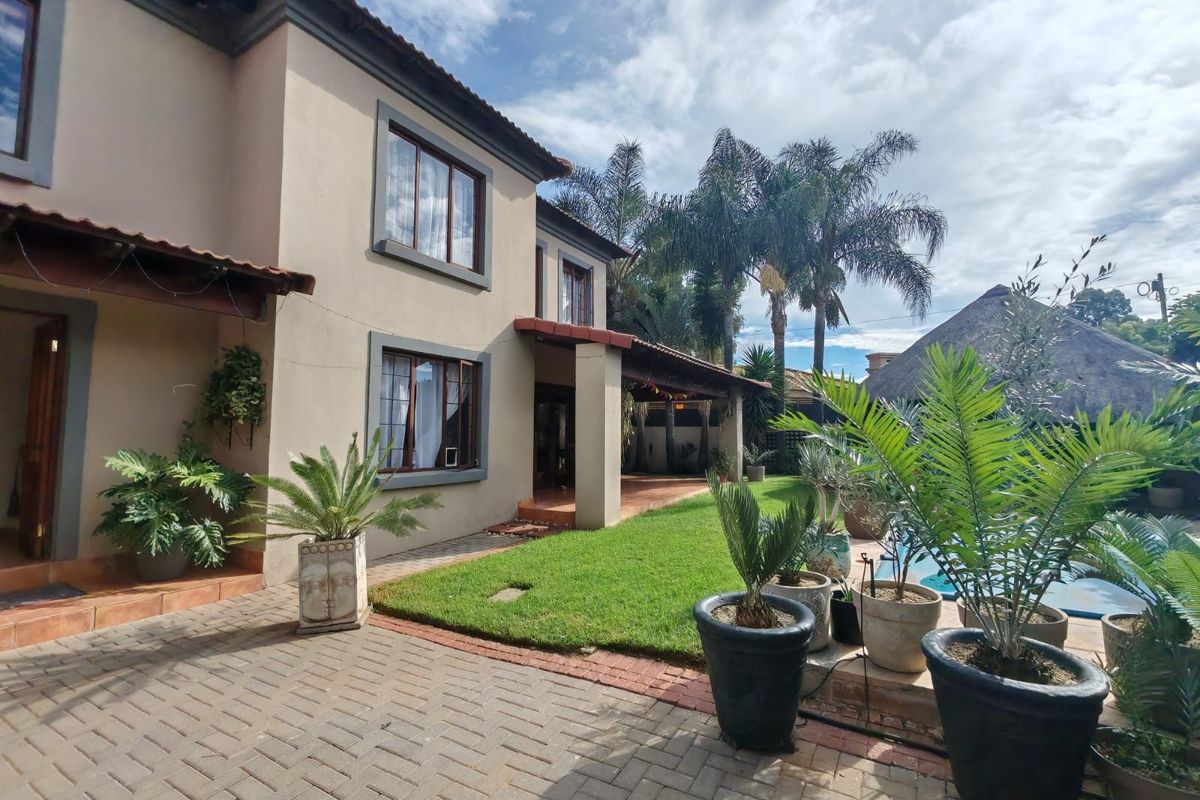 Entertainer's family retreat in a secure estate with 24-hour security, pet-friendly grounds and a lapa overlooking pool and garden — five bedrooms, four bathrooms, double garage.