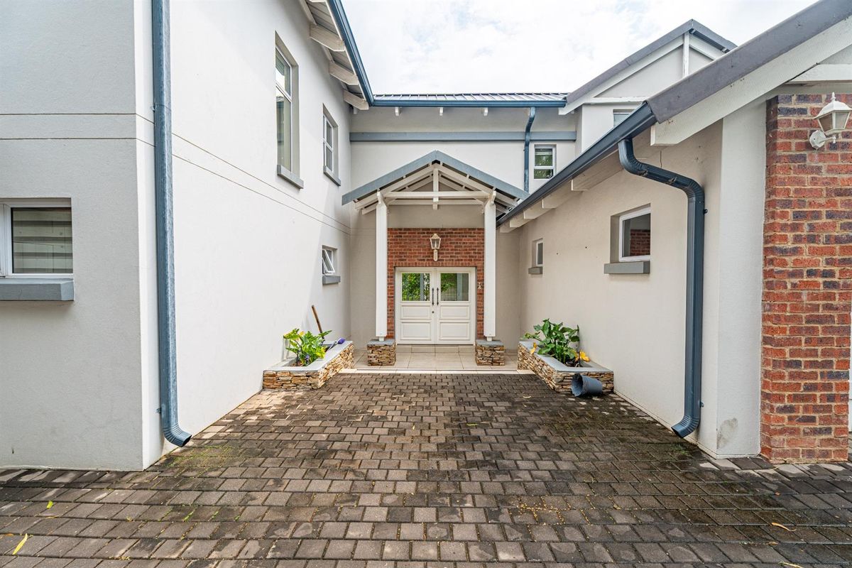 Resort-style estate living in Waterfall Country Village, Midrand — seamless indoor-outdoor flow with river and dam views, pool and covered braai patio. Four bedrooms, three bathrooms, triple garage.