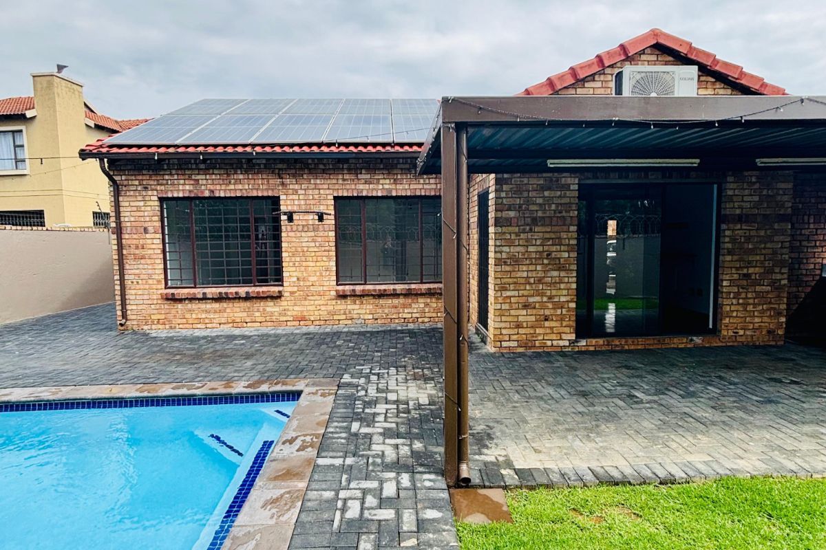 Relaxed family living in Lyngrove Complex, Equestria, with sunny patio and heated pool; open-plan kitchen, private garden and double garage — three bedrooms, two bathrooms.
