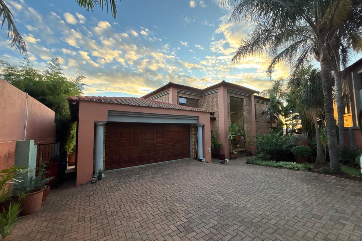 Hillside family retreat in Faerie Glen's secure gated community, offering light-filled living, a sunroom with built-in braai and private guest suite — four bedrooms, 3.5 bathrooms, double garage.