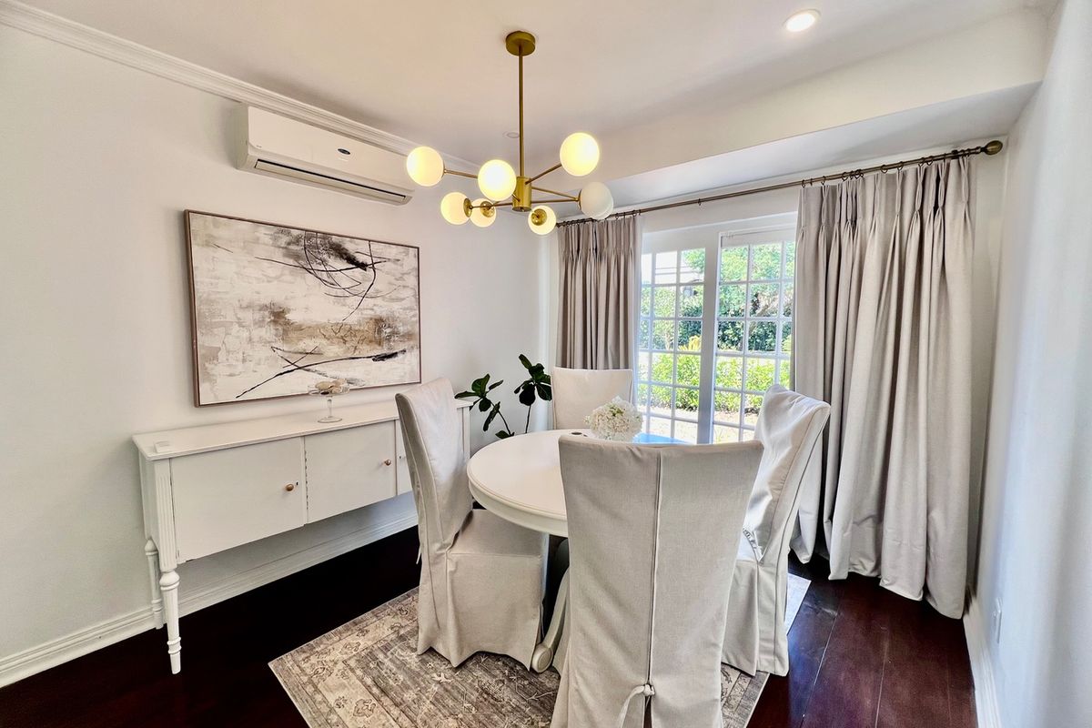 This home offers five well-appointed bedrooms, two of which feature en-suite bathrooms. Each room includes built-in cupboards and curtains, with select rooms offering added touches like ceiling fans, air-conditioning, work desks, or direct garden access. One of the rooms is furnished with a queen-size bed and couch, while others include double beds or flexible open space to suit your needs. A full family bathroom with both a bath and shower services the remaining bedrooms.