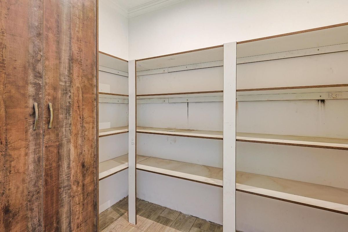 The well-appointed kitchen features granite countertops, a breakfast nook, a walk-in pantry, a 5-plate gas hob, electric oven with extractor fan, prep bowl, and a separate scullery with space for three appliances and a double-door fridge.