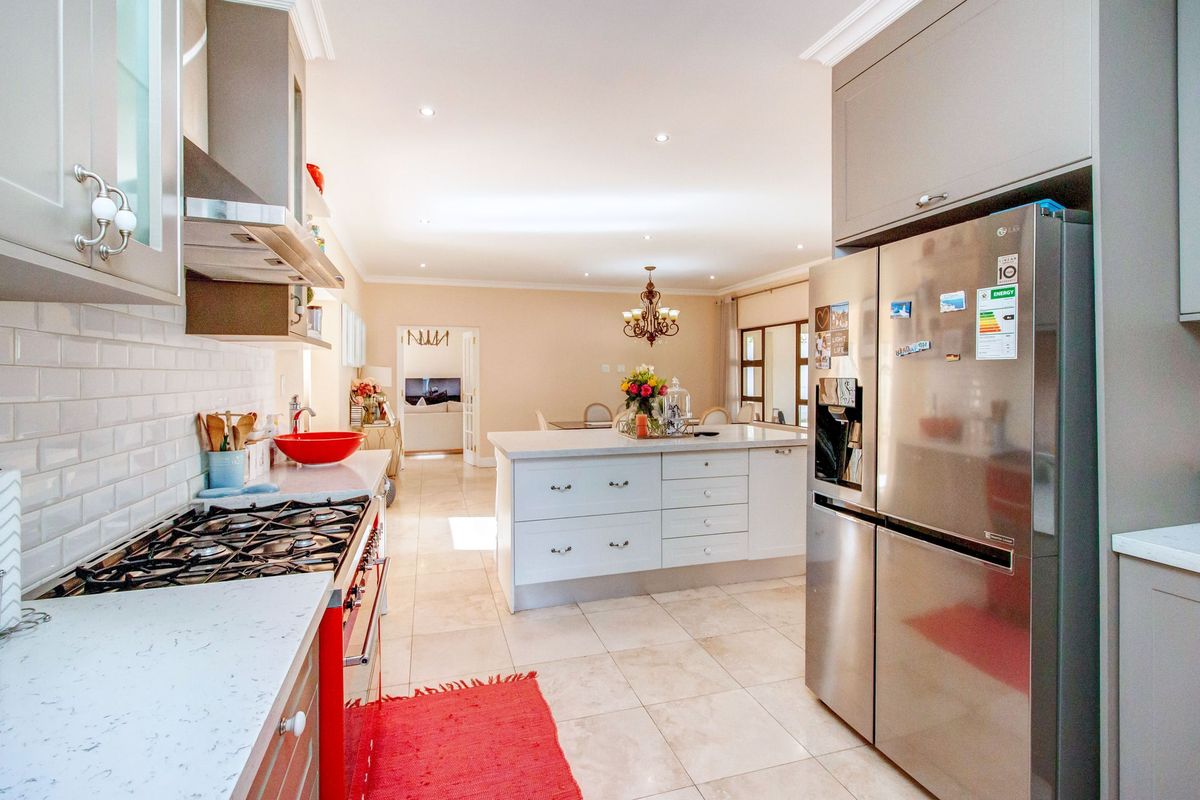 This is a home within a highly-sought after estate in Broadacres, and it should be on your preferred list. This home set on a generous stand is the ideal family home that offers spacious bedrooms, open spaces and a pool. This family home comprises of 2 spacious reception rooms, both flows into the entertainment area, and an open plan dining room and a pool. One bedroom downstairs with ensuite, suitable for your guest and a guest loo downstairs. The kitchen is impressive with freestanding SMEG gas/electric stove, an island and a space a for large fridge, a scullery that opens out to the yard.. Upstairs you 'll find 4 generous bedrooms with balconies, main bedroom has ensuite and 3 bedrooms are sharing a bathroom. There is 24/7 estate security, so your family is secured and family friendly community. It is well situated close to shopping centres like Broadacres, Chartwell Corner and few km to Fourways Mall, Cedar Square, Monte Casino and is less than 15km to Lanseria airport. You will be close to the best schools in the area. There is ample parking outside in addition to 3 garages. A jojo tank in case of water outage. Swimming pool. Don't miss out. Price negotiable. Book for your private viewing today.