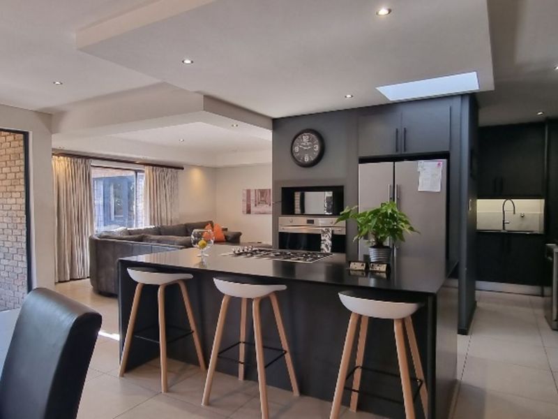 Family-friendly entertainer's retreat in Bryanston estate living, minutes from Bryanston Shopping Centre; open-plan modern kitchen, private garden with braai, four bedrooms and double garage.