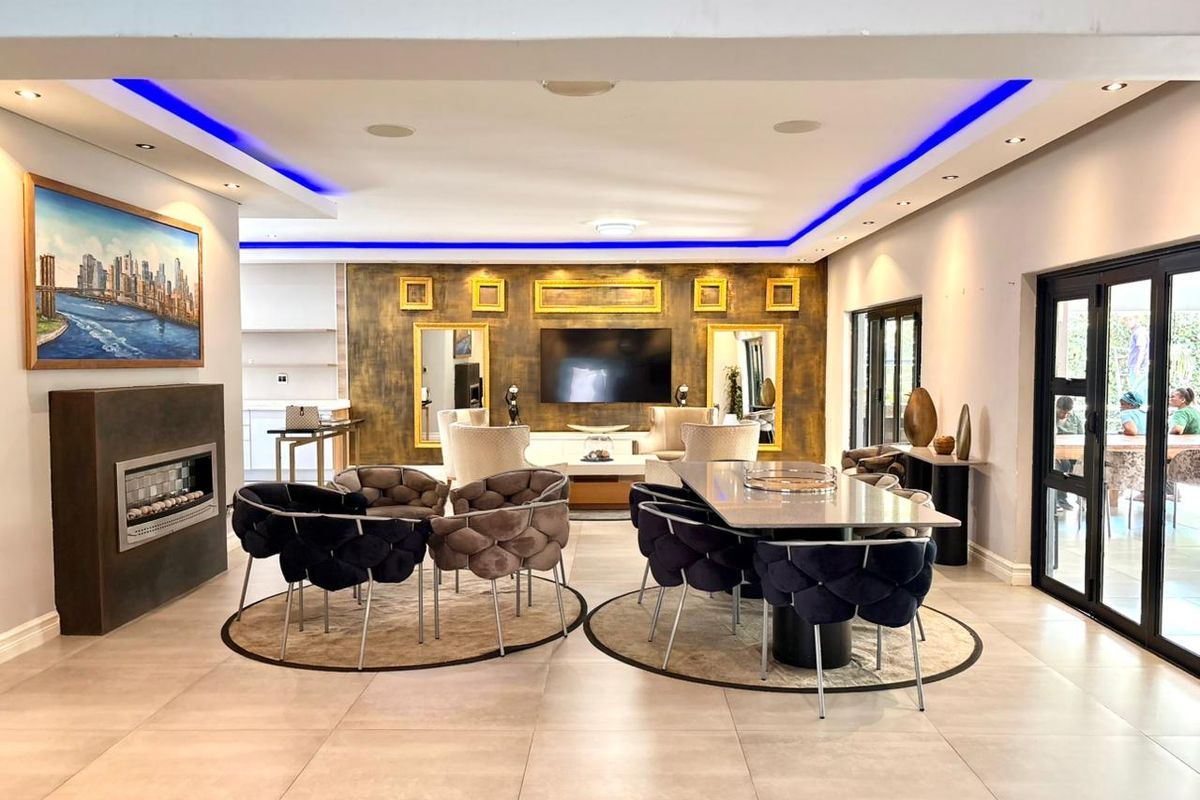 Entertainer's haven in Rivonia (Edenburg), minutes from Sandton CBD and N1 access, with expansive garden and pool, massive balcony, six bedrooms, 6.5 bathrooms and four-car garage.