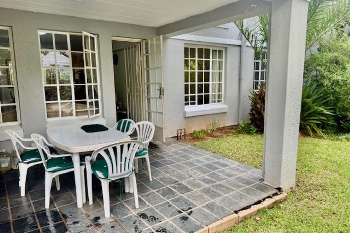Relaxed, secure living opposite Morningside shops and gyms — quiet garden unit at the back of the complex with communal pool and braai; two bedrooms, two bathrooms.
