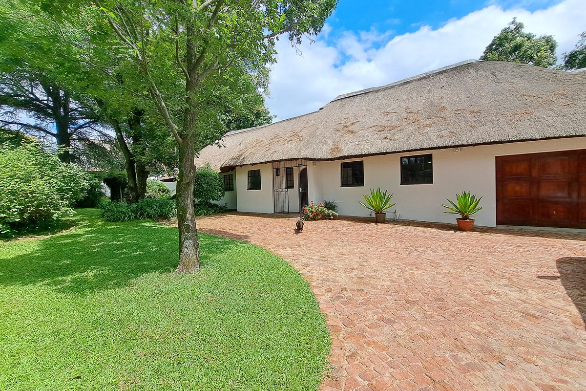 Enjoy leafy Morningside living in Sandton with a lush private garden and thatch-roof charm; refurbished Bosch kitchen, separate flatlet for office or teens; three beds, three baths and triple garage.