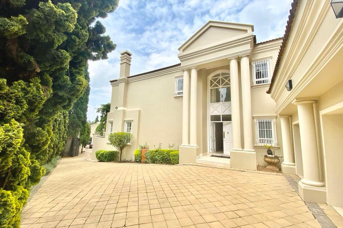 4 bedrooms, 3.5 bathrooms, 856 m² property in Sandhurst, Johannesburg. Unfurnished, double-story with landscaped garden and security features.