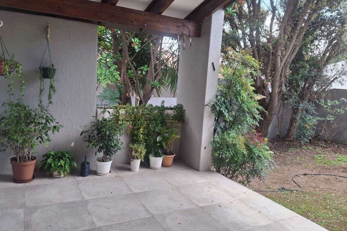 Tranquil garden living in The Trails, Sandown — leafy paths, 24-hour security and access to Sandton CBD, with a private restored garden, covered patio, two bedrooms, two bathrooms, double garage.