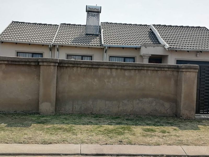 Relaxed family living near parks, golf and shops in Presidents Dam, Gauteng — single-storey home with private swimming pool; four beds, two baths and double garage.