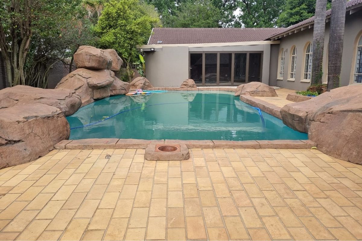 Relaxed family living near parks, golf and shops in Presidents Dam, Gauteng — single-storey home with private swimming pool; four beds, two baths and double garage.
