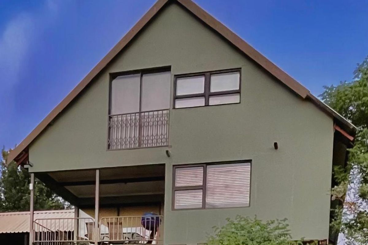 Riverside entertaining and relaxed summer living on the Vaal River, with lodge amenities, wooden deck patio and pool. Three bedrooms (loft TV lounge), three bathrooms, double garage.