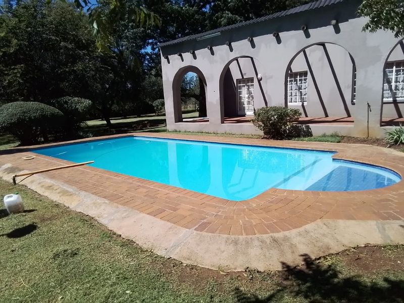 Country retreat living at Walker Fruit Farms, Midvaal — serene garden and sparkling pool for outdoor entertaining, plus an optional separate workshop/office; three bedrooms, double garage.