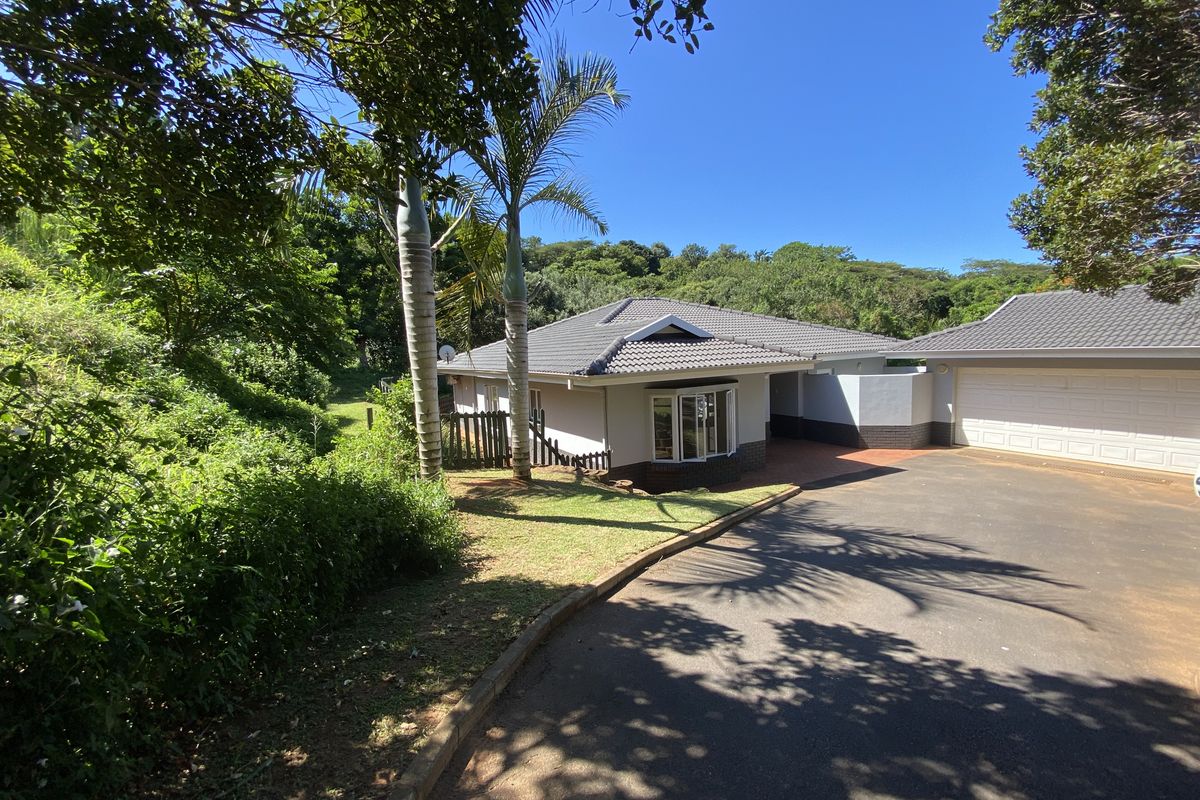 Live centrally in Ballito with beaches, schools and shops minutes away; secure estate living with enclosed garden for two pets — four bedrooms, two bathrooms, double garage.