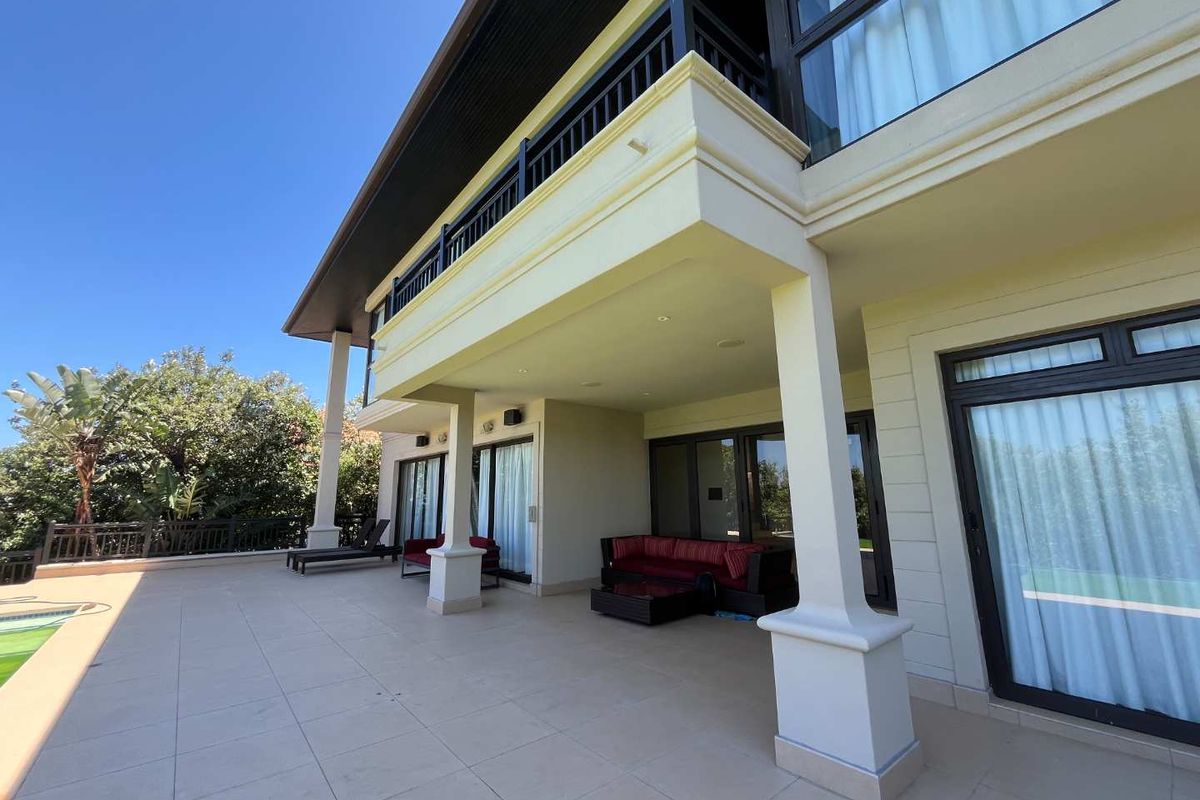 Resort-style coastal living in prestigious Zimbali Estate with panoramic ocean views, private infinity pool and elevator access. Fully furnished five-bedroom home ideal for entertaining and relaxation.