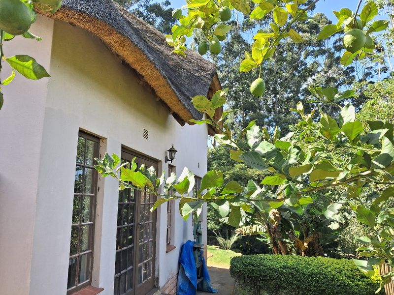Peaceful end-of-Rock-Road living with village charm in Waterfall, featuring a cozy thatched double-storey cottage, private storage hut and double covered carport. Two beds, two baths.