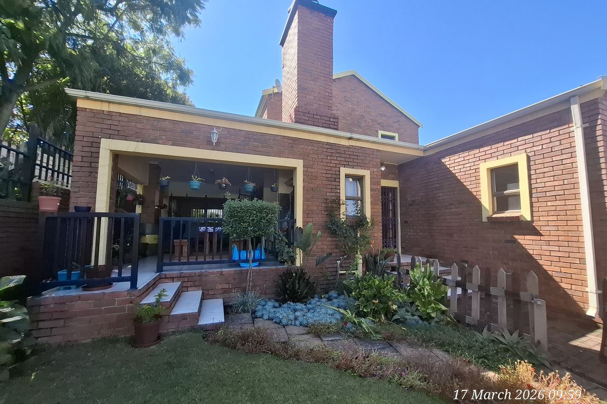 Relaxed family living in Aviary Hill with a covered stoep and built-in braai overlooking a private garden; modern kitchen, three bedrooms including ground-floor main with en-suite.