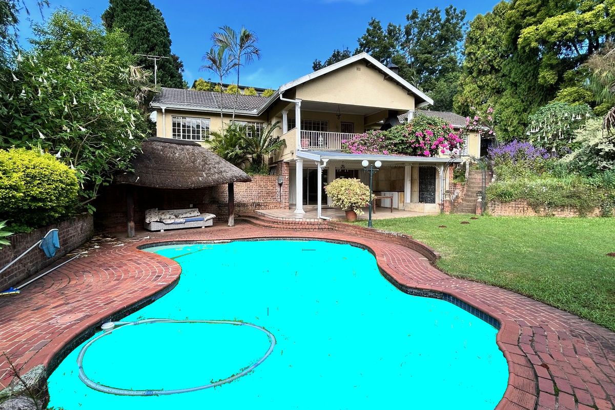 This stunning split level home boasts 4 spacious bedrooms (or 3 and a study) with a fantastic entertainment area that flows seamlessly to the pool and thatched Lapa area from the downstairs lounge and patio. The upstairs lounge leads to another patio with built-in braai and views of the garden and pool as well as the greenbelt.