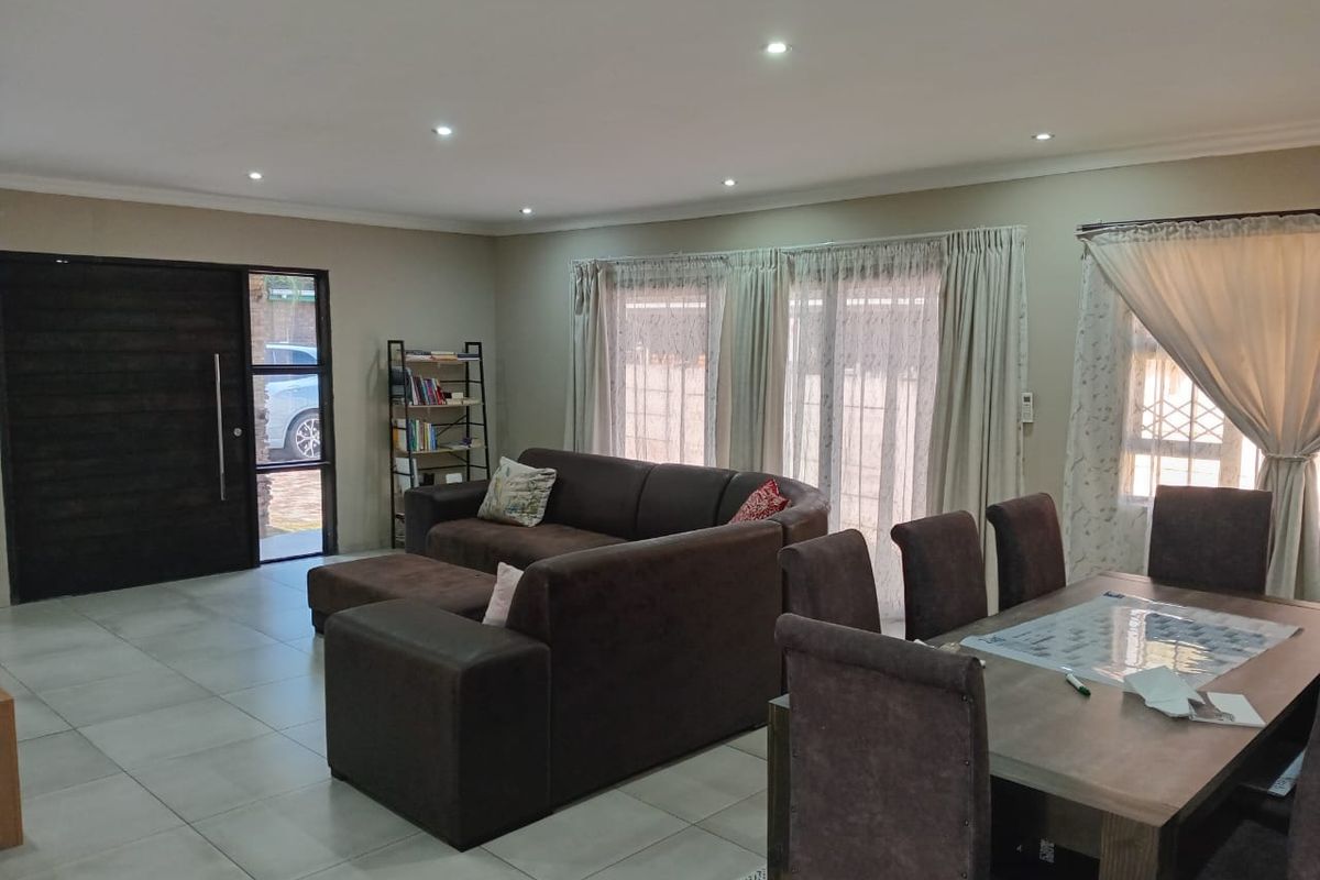 Additional features include a double automated garage, an automatic gate for added security and convenience, an electric geyser, a durable tiled roof, and aluminium windows throughout. A satellite dish is also included for your entertainment needs.