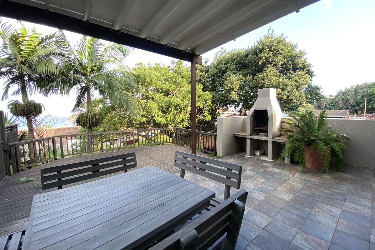 Beachfront North Beach Road townhouse offering relaxed coastal living, sunken lounge and patio with uninterrupted ocean views and built-in braai. Three bedrooms, two baths, lock-up garage, communal pool.
