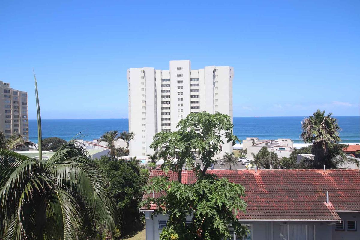 Beachside living steps from Umhlanga Village and the beach, featuring a large outdoor deck and balcony with sea views, open-plan granite kitchen, three bedrooms, 2.5 baths and garage.