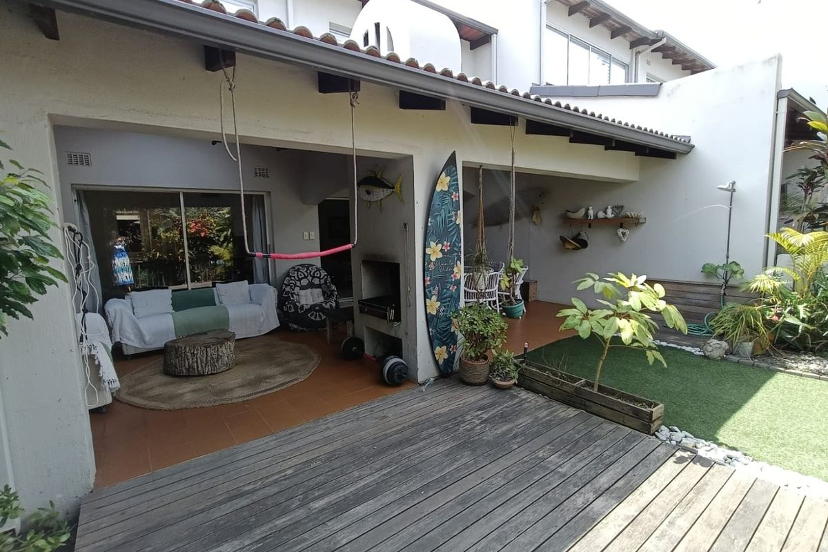 Beachside living in Umhlanga near The Village, La Lucia Mall and Gateway, with direct beach access, covered patios and private garden; four bedrooms, 3.5 baths, double garage.