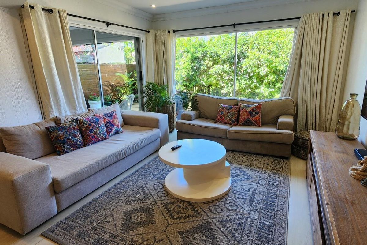 Embrace Umhlanga beachside living with open-plan flow to a private garden and covered patio, communal pool and direct beach access; five bedrooms, three baths, double garage.